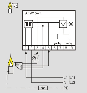 ![]() | AFW15-T is a kind of detector to monitor the flame status of burner nozzle and send switching value signal to external.The display of the flame status can be realized by opening or closing of a relay. The flame is monitored by ionizing rod or AVS1, AVSB probes. Working pressure of the flame signal amplifier inside the two groups of passive switches (one is normally closed and one is normally open): 220V/110V; Capacitance of oplional conlactor: 2A; Power: 12VA: lonization current of flame: >1 μ A; Ambient temperature: -20 ℃-—+60 ℃: High-strength heat-proof plastic shell: There are control circuil board, flame signal amplifier and green indicator lamp (A) inside the plug-type upper cover; There are connection terminals in the base and the earth wire and the null line terminal biocks are pre-connected; 5 wire holes can be connected to PG9(B) cable. |