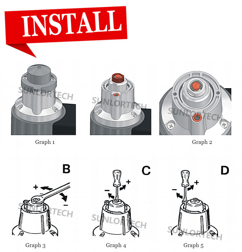 1. Release the two screws of the plastic lid (Graph 1), remove the lid and see three function adjustment bs (Graph 2).
