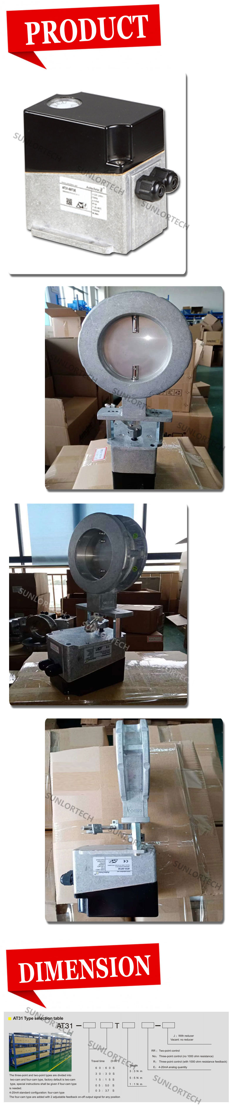 At31 series of motor-driven actuator system is used for all operation in need of 0-90℃ rotation, which can work with butterfly valve to adjust flow of gas or air, or work with linear valve, using three-point-type control signal. There are 2-cam and 4-cam types, of which the 2-cam type is default. Please inform if you need the 4-cam type. One of the 2 cams is used to adjust the smallest angle and the other to the largest open angle. The other 2 cams provide 2 groups of 0-90℃ adjustment. Working with output relay, when it runs to a certain position, it can provide 2 groups of switching value outputs for choice. There are 220V and 24Vpower-type for continuous control signal (AT..E)and two-point-type control signal (AT..R), of which the 220VAC is default. Please inform if you need 24V-type when making an order.