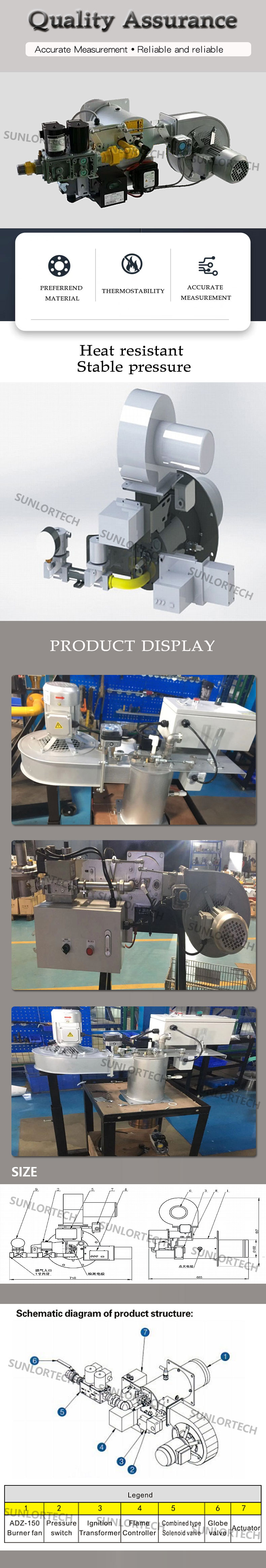 The ADZ series low-temperature full-combustion engine is primarily developed for drying equipment with high flue gas volume at low temperatures. It can operate stably under conditions of high negative pressure and zero-pressure furnace chambers, where the flue gas is dense and hot. Suitable for combustion scenarios near atmospheric pressure, such as textile machinery, printing machines, and other types of dryers in the textile industry. This product features dual electromagnetic valve safety protection, air pressure monitoring, and a burner controller with purge function, paired with ion rods for flame detection, ensuring stable and reliable performance. Different control components, burners, and system displays can be selected according to customer requirements.