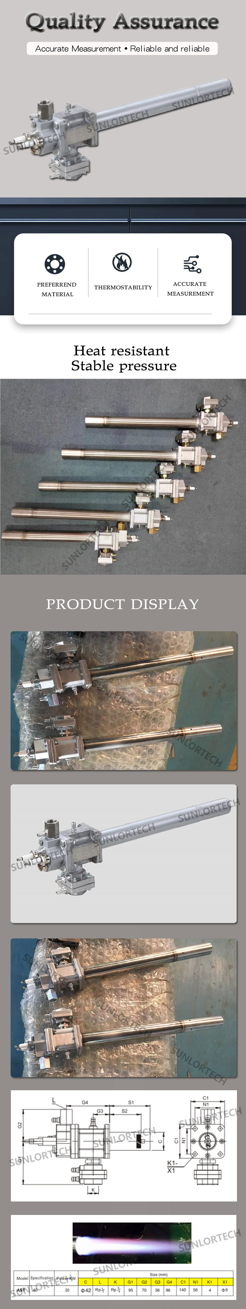 3.This nozzle cannot be adjustable. lt is suggested that On/Off system with constant power be used or pilot flame of ignition be prolonged.4.Maximum temperature of flame duct is 1200 degrees and shell can with stand the temperature at 500 degrees.