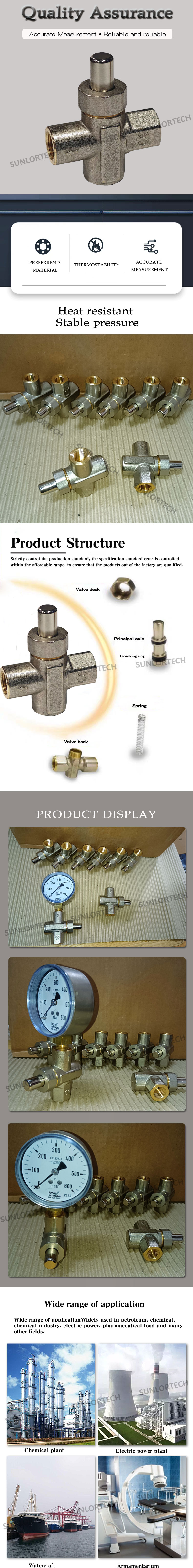 -Valve body: the valve body is made of brass, which is resistant to pressure and corrosion, and integrates pressure gauge interface.