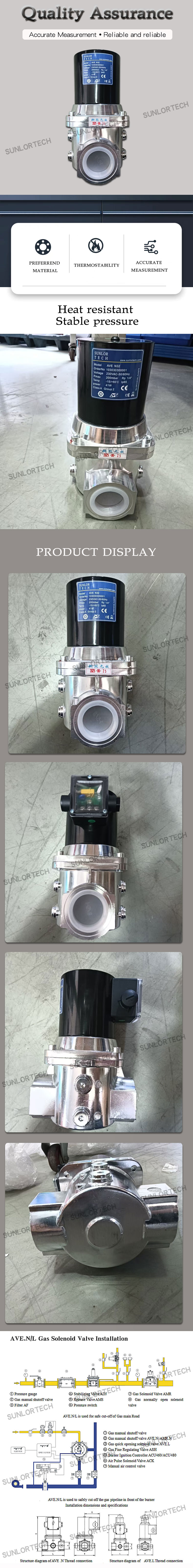 AVE.N series fast opening and closing gas solenoid valve.Used in the field of safe transportation control to provide opening and closing or cutting off gas supply.