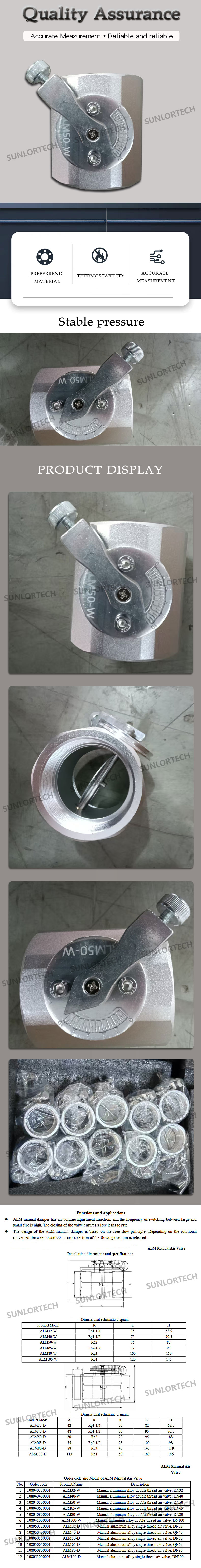 ALM manual air valve is a control valve. ALM is one of the patent structures of our company, which can reduce clamps. It is used in air pipe and works under the condition of no more than 200C hot air. The entrance can be connected by either straight-through connection or threaded connection, the valve body parts are marked with locking screws. and the valve plates and shafts are made of stainless steel. It is adjusted manually and is generally used to adjust the combustion air of the burner.